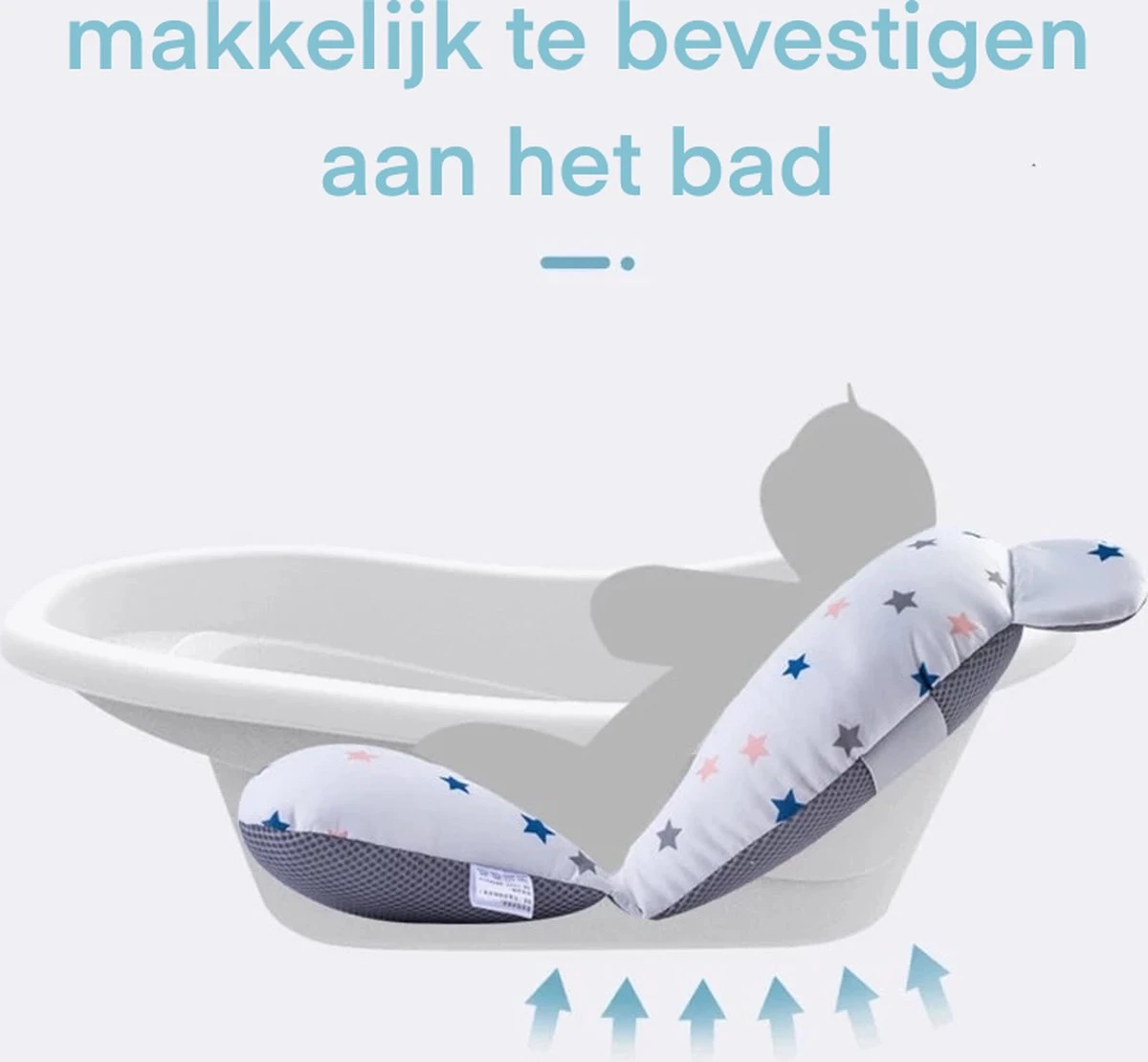 Op zoek naar het beste badkussen voor je baby? Of aan het zoeken voor een leuk cadeau voor die ene vriend/vriendin die een pasgeboren kindje heeft? Met dit badkussen kan je zonder zorgen je pasgeboren baby badderen! Super makkelijk in gebruik, bevestig het kussen met de elastische straps aan het badje zodat het kussen netjes op zn plek blijft. Na het badderen hang je het kussen op en door het lichte en sneldrogende materiaal blijft het kussen fris en is snel weer klaar voor