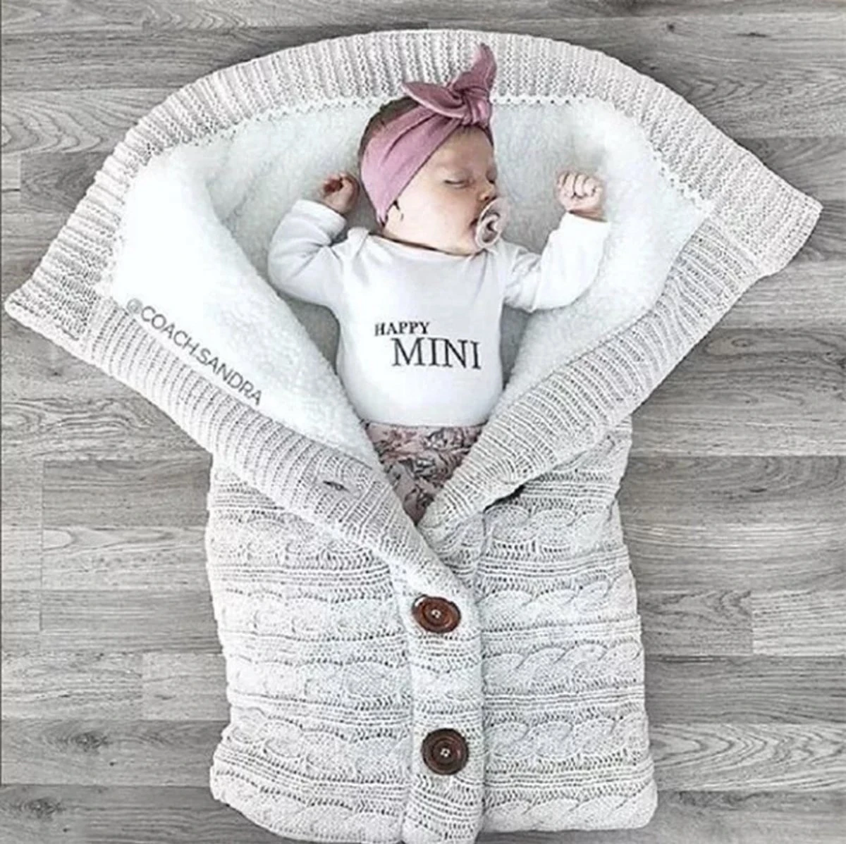 Deze leuke gebreide baby slaapzak is helemaal in. Sluit de baby slaapzak gemakkelijk dicht met de knopen aan de zijkant. De slaapzak is gemakkelijk wasbaar op 30 graden en is uitermate geschikt als kraamcadeuau voor jongens en meisjes. Gebruik de baby deken van BonBini’s ook als wandelwagen deken of als babydekentje het gehele jaar door.