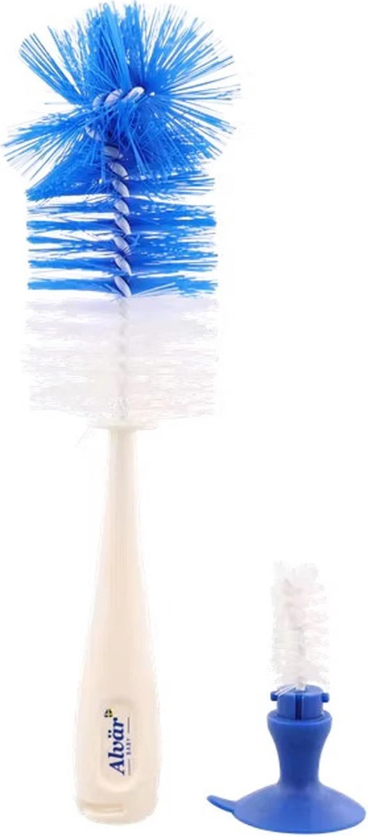 Babyflessen kunen snel en grondig schoongemaakt worden met de grote borstel. Om de speen schoon te maken gebruik je het kleine borsteltje. Door het handige ontwerp van dit product schuif je zo weer het kleine borsteltje in de hals van de grote, waardoor je ze makkelijk samen opbergt. Tevens voorzien van een zuignap. Onwijs handig!