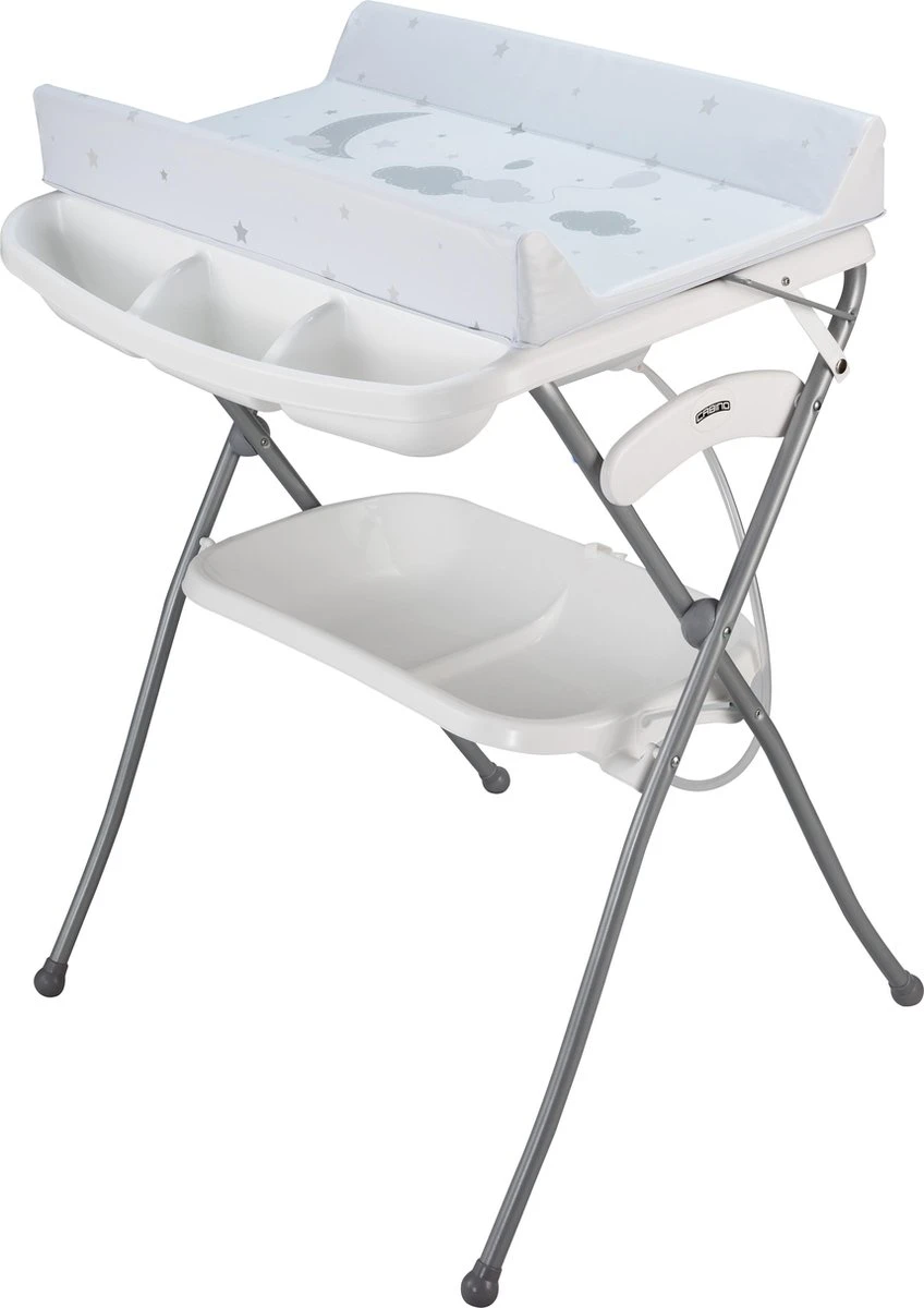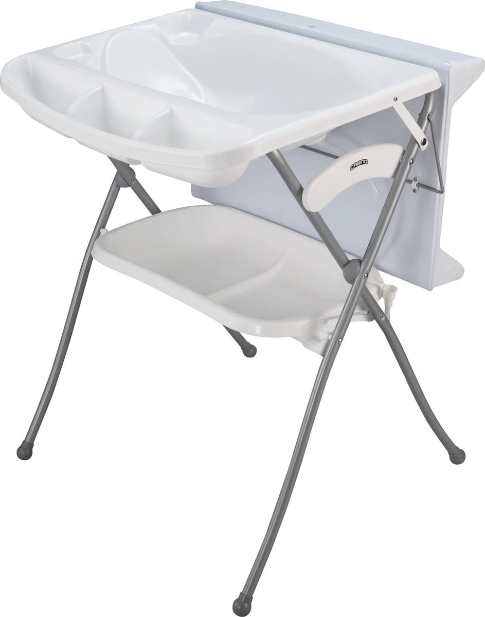 In bad gaan wordt een feestje met deze super handige Cabino Badcommode. Met deze praktische alles in één verzorgingstafel met badje heb je alles snel en gemakkelijk bij de hand. De commode bestaat uit een badje, aankleedtafel met kussen en handige opbergvakjes. Het aankleedkussen kan je gemakkelijk met één hand optillen waardoor jij je kindje een badje kan geven zonder te hoeven bukken. De badcommode is gemaakt van lichte materialen waardoor je het badje gemakkelijk overal in huis kunt plaatsen.