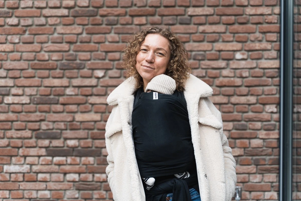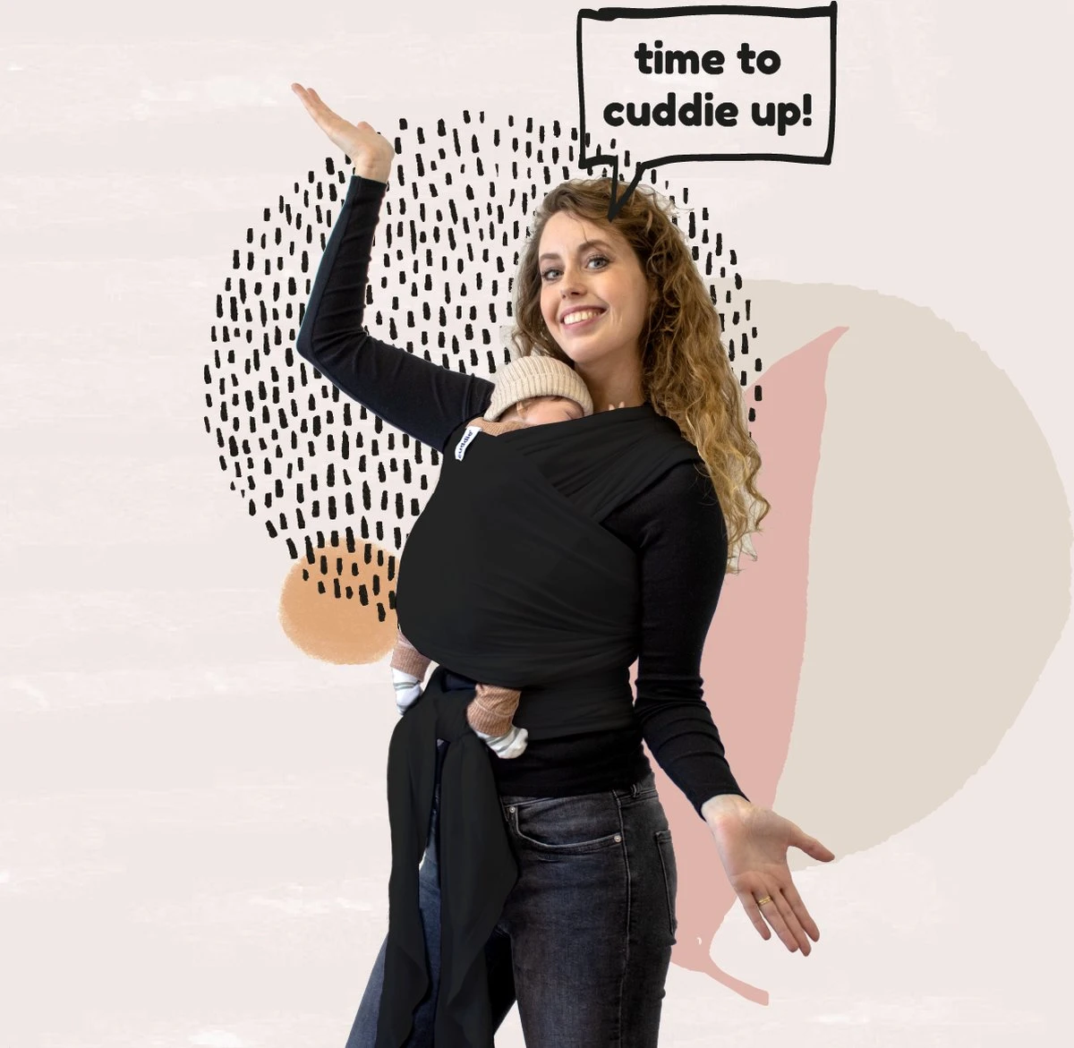 Cuddie Baby Draagdoek – Premium Organic Baby Draagdoek Gemaakt Van Bio Katoen – Newborns Tot 15 Kg – Baby Cadeau – Met Wenskaart – Zwart