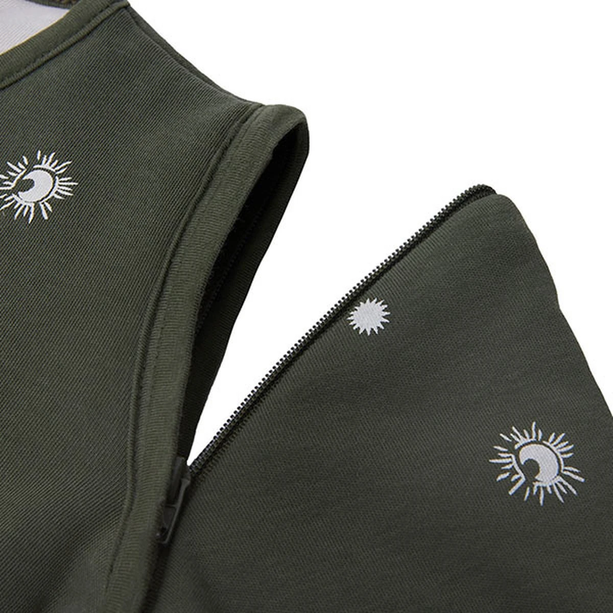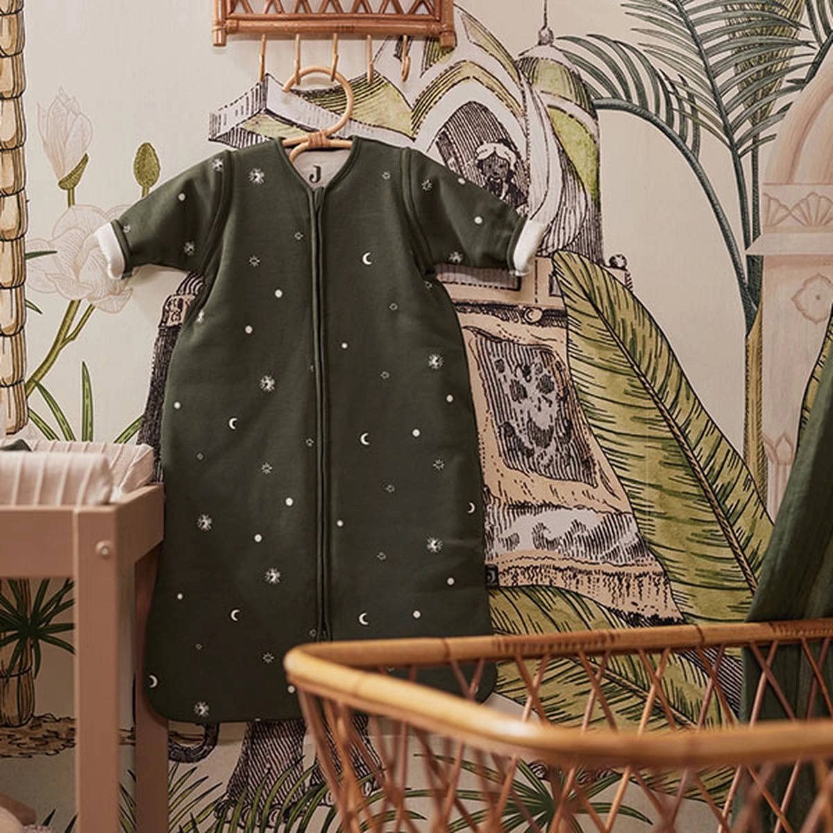 Heb jij ook een vast avondritueel met jouw kleintje? Even samen een boekje lezen of een liedje zingen, slaapzakje aan en lekker instoppen? Deze fijne babyslaapzak met stoere print gemaakt van Jersey heeft afritsbare mouwen. Zo tover je hem om van een TOG-waarde van 3.0 voor de koude winterdagen naar een TOG-waarde 2.0 voor de frisse nachten in de lente en het najaar. Een slaapzak geeft jouw baby een geborgen gevoel, geeft warmte én beperkt de bewegingsvrijheid. Wel zo fijn met jouw actieve deugniet. Is de slaapzak nog niet warm genoeg? Deze slaapzak is goed te combineren met de dekentjes uit de Pure Knit collectie van Jollein in de kleur Naturel, Biscuit of Leaf Green.