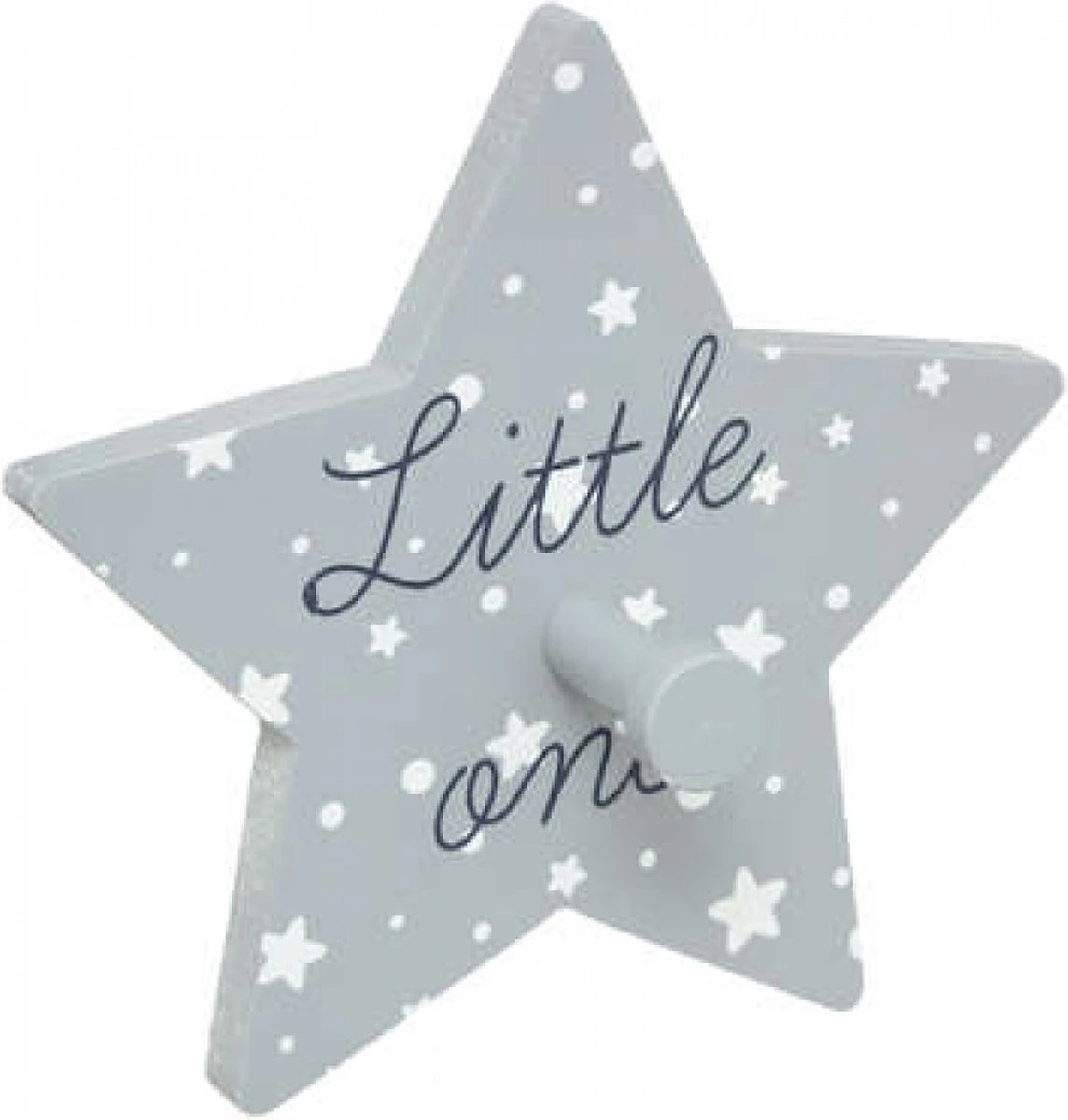 De kapstok heeft de vorm van een ster met tekst Little one , maan , wolk.