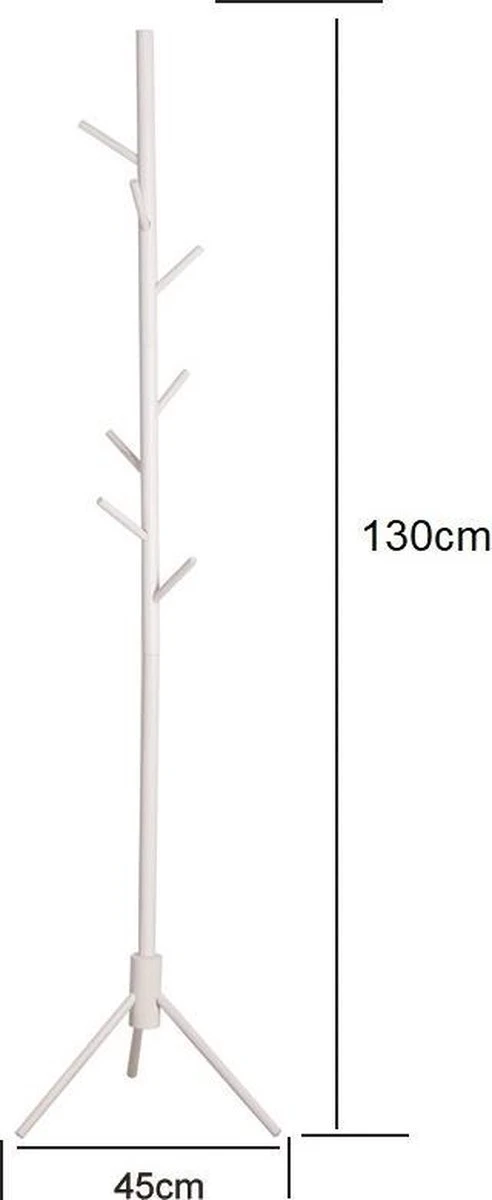 Een erg bruikbare en praktische witte staande houten kapstok voor kinderen van 130 cm hoog met 6 ophanghaken. Deze kapstok met het uiterlijk van een boom met takken is uitermate geschikt om uw kinderen hun kleding jasjes tasjes en ruzakken petjes sjaals sieraden of andere accessoires aan op te laten hangen zodat de kinderkamer babykamer hal ontvangsruimte of iedere andere ruimte in uw woning of kantoor netjes blijft. Afmetingen zijn 130 cm hoog en 45 cm breed en diep. Levering inclusief montage instructie en benodigde onderdelen. Ook verkrijgbaar in de hoogte van 178 cm en in de kleuren zwart en lichtbruin.