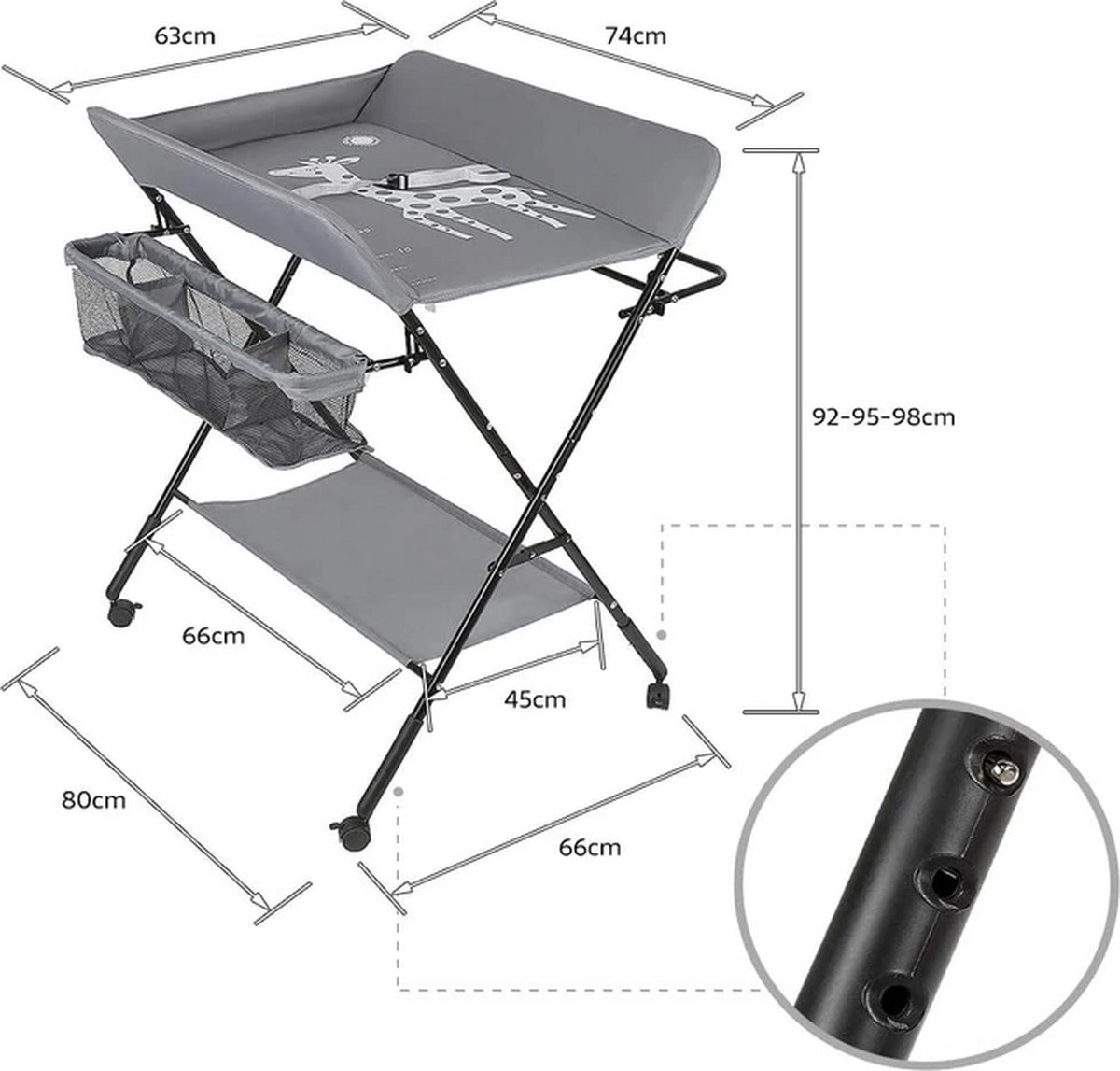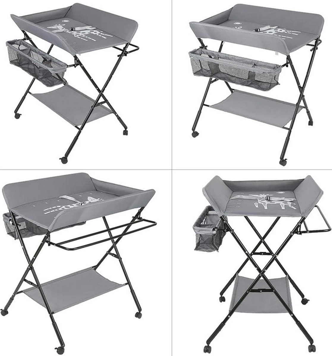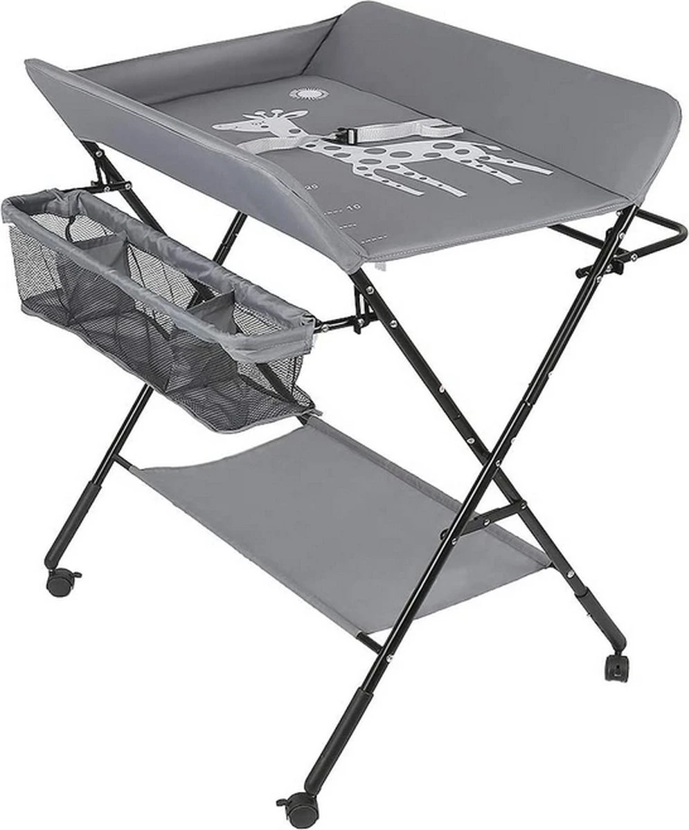 Kari Verschoontafel Baby Opvouwbaar En Draagbaar- In Hoogte Verstelbaar – Luiertafel – Verzorgingstafel – Giraffe Patroon (Grijs)