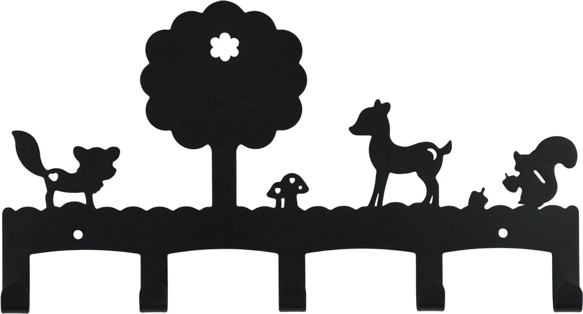 Het design van deze kinderkapstok is volledig gericht om kinderogen te laten glimmen, Tyro de vos staat in het boslandschap met zijn vriendjes het hert en de eekhoorn. Paddenstoelen met hartjes en een golvend landschap maken het geheel compleet. Daarnaast past deze Kinderkapstok Tyro zwart ook perfect bij de silhouet plafondlamp Tyro.