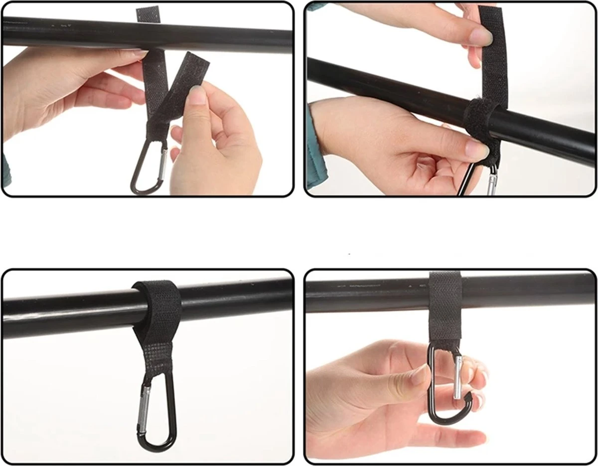 De voordelen eindigen hier niet! De haken kunnen gemakkelijk worden gebruikt met autohoofdsteunen, fietsen of zelfs rolstoelen om uw tassen veilig te houden en uw handen vrij!