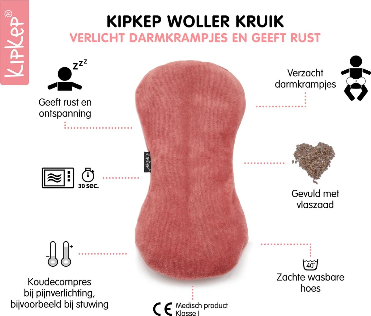 Waarom werkt de Woller zo goed? De Woller is een warmtekussentje, dat gevuld is met vlaszaad. Je warmt de Woller eenvoudig op in de magnetron en legt hem op het buikje van je baby. De warmte zorgt meteen voor ontspanning en vermindert krampjes.