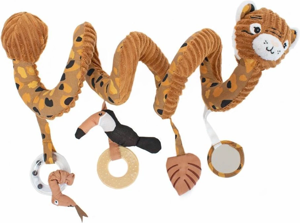 Deze activiteiten spiraal is een leuk en leerzaam speeltje dat je overal gemakkelijk kunt ophangen! Je baby zal veel plezier beleven tijdens het wakker worden dankzij de vele activiteiten: het geluid van ritselend papier, een rammelaar, een kleine spiegel, knopen en een bijtring. Een leuk speeltje voor je baby om te ontdekken.