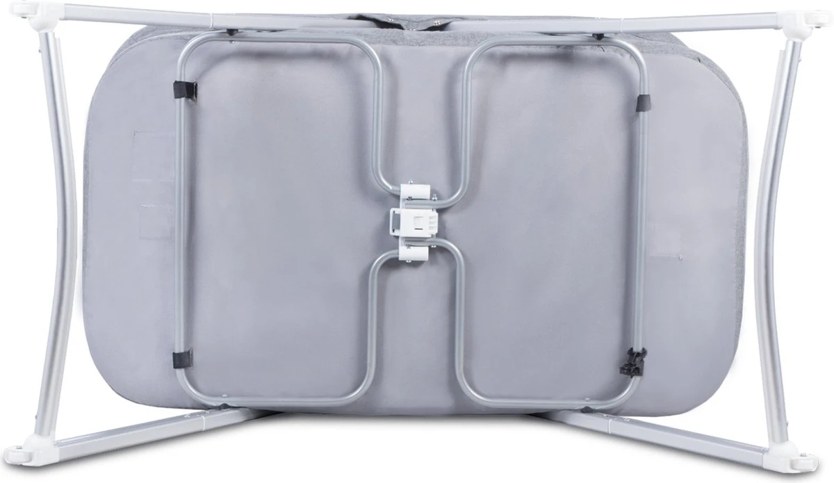 Het volstaat om aan de in de matrasgleuf verborgen handgreep te trekken om het ledikant met één handbeweging op te vouwen tot een compact formaat. Opgevouwen neemt het weinig ruimte in beslag en past het