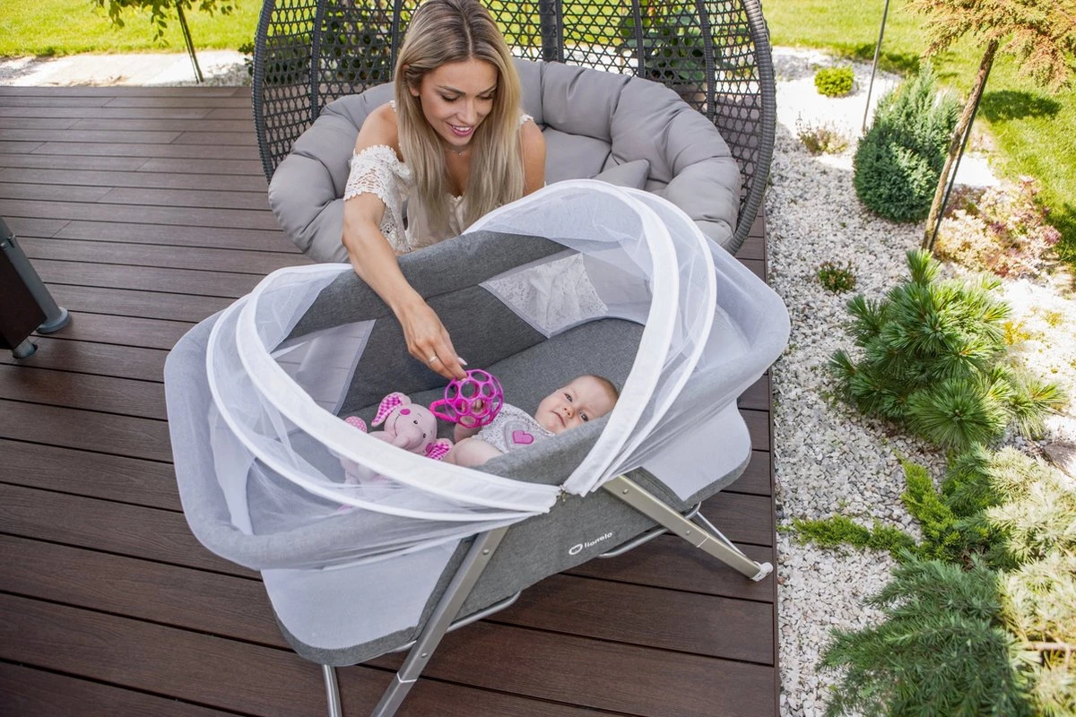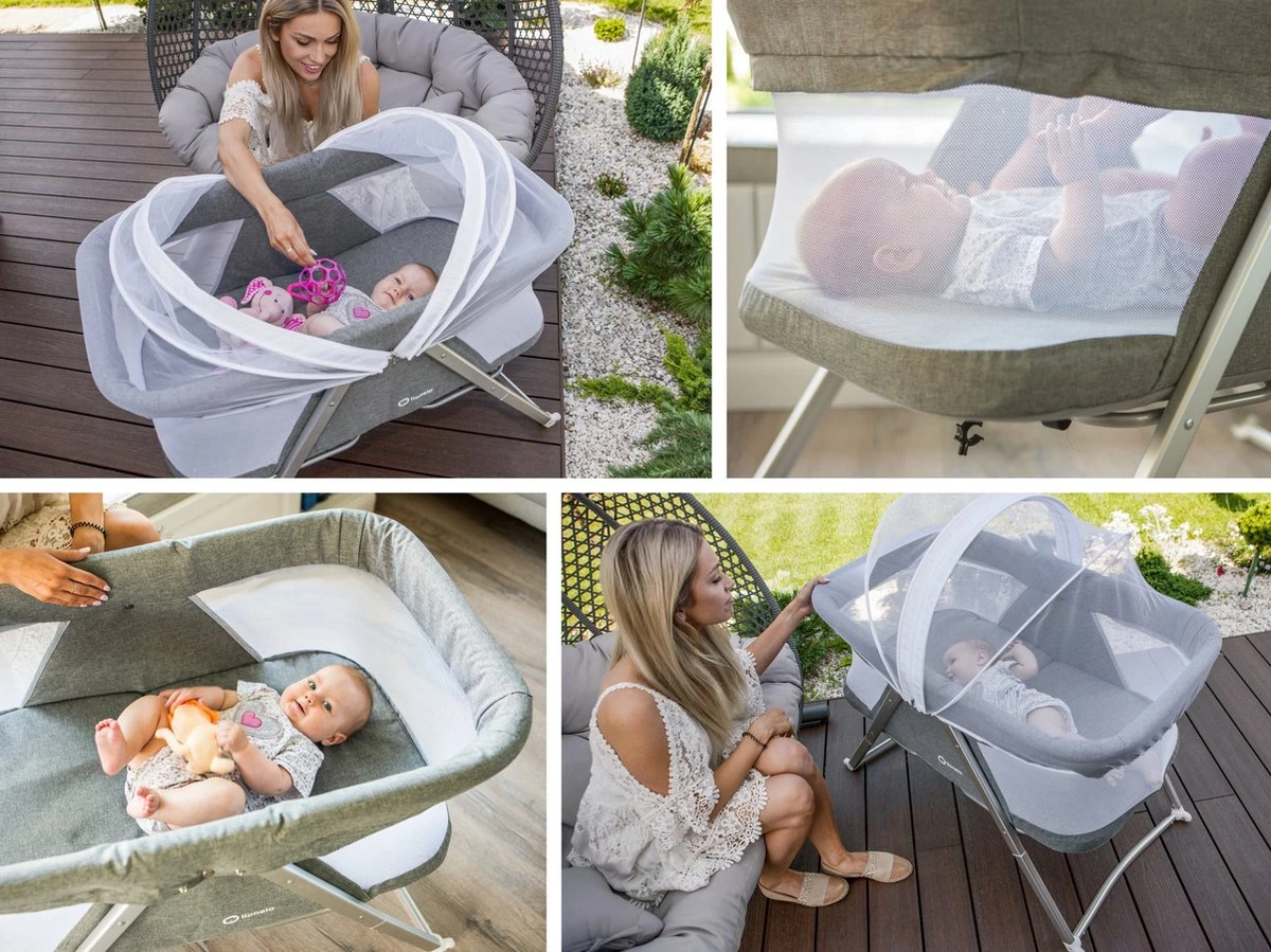 Dankzij het bij de set inbegrepen kmuskietennet kan het Lionelo Vera babybedje buiten worden geplaatst zonder bang te zijn om door insecten gebeten te worde. Het muskietennet wordt vastgemaakt met ritssluiting.