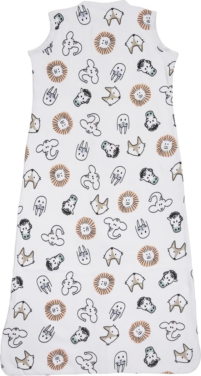 Wat een vrolijke beestenboel op deze Meyco Baby Slaapzak Animal! De slaapzak bestaat uit 1 laag gemaakt van 100% zacht katoen en is hierdoor perfect voor de warmere zomerdagen en -nachten. Het katoen ademt goed, heeft een goede vochtregulatie, houdt je kleintje op de juiste temperatuur en zorgt er zo voor dat het zomers niet te warm wordt.