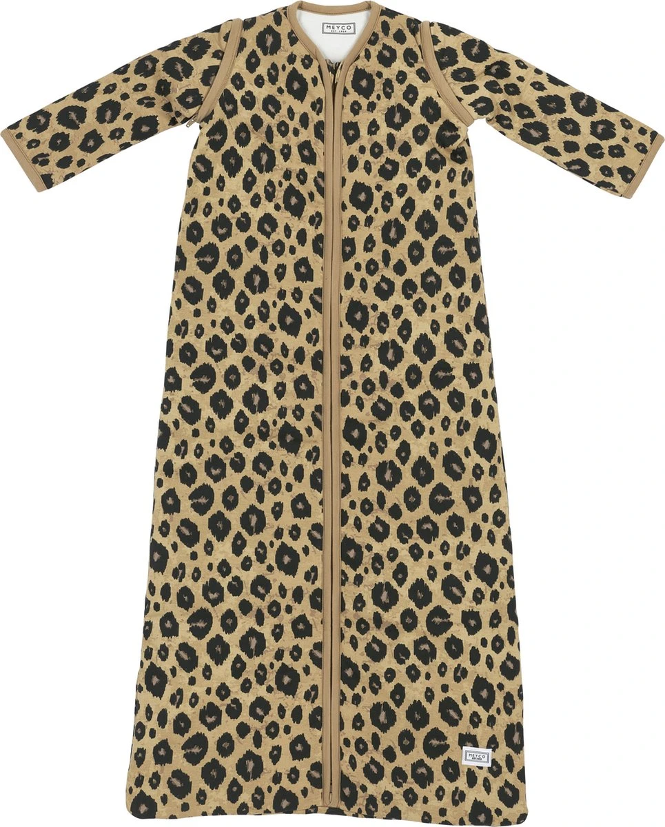 De binnen- en buitenslaapzak hebben samen een TOG-waarde van 3.0. Hoe hoger de TOG-waarde hoe warmer. De slaapzak heeft een veilige pasvorm, doordat hij goed aansluit bij de hals en de armpjes. De stijlvolle luipaard print mix en match je perfect met de complete Meyco Baby collectie.