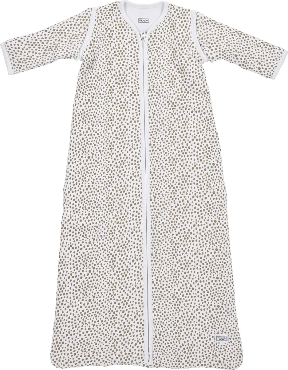 De Meyco slaapzak met afritsbare mouwen heeft 2 lagen zacht katoen en een lichte vulling. Comfortabel en warm in de winter en door de afritsbare mouwtjes en 100% katoenen stof ook fijn ademend in het voor- en najaar. Een Meyco slaapzak heeft een veilige pasvorm door de goede aansluiting bij de hals en armpjes. De slaapzak heeft een hip dessin en kunnen gecombineerd worden met de complete Meyco collectie.Verkrijgbaar in de maten: