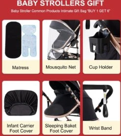 KIDUKU- 3 In 1 Combi-kinderwagen- Bruin/goud- Buggy Incl. Autostoeltje-regenhoes- Inklapbaar