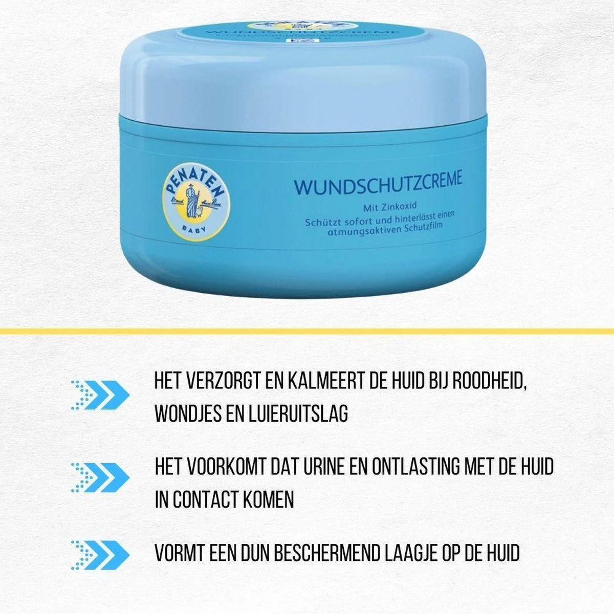 Penaten luierzalf Crème bevat natuurlijk verzorgende bestanddelen dat rode huid, wondjes en luieruitslag verlicht en helpt genezen. Doordat de formule uit puur natuurlijke bestanddelen bestaat is het geheel huidvriendelijke. De babyverzorgingscrème met een lichte textuur is ideaal voor dagelijks gebruik