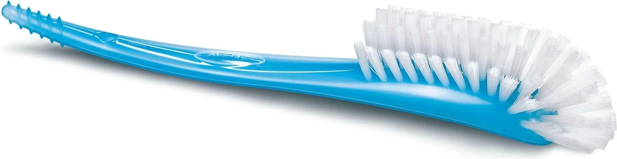 De Philips Avent SCF145/06 fles- en speenborstel heeft een speciaal ontwikkelde gebogen borstel met een geribbeld uiteinde, om alle soorten flessen, spenen en voedingsartikelen effectief te kunnen schoonmaken. De duurzame, dicht op elkaar geplaatste borstelharen reinigen veilig en zonder krassen.