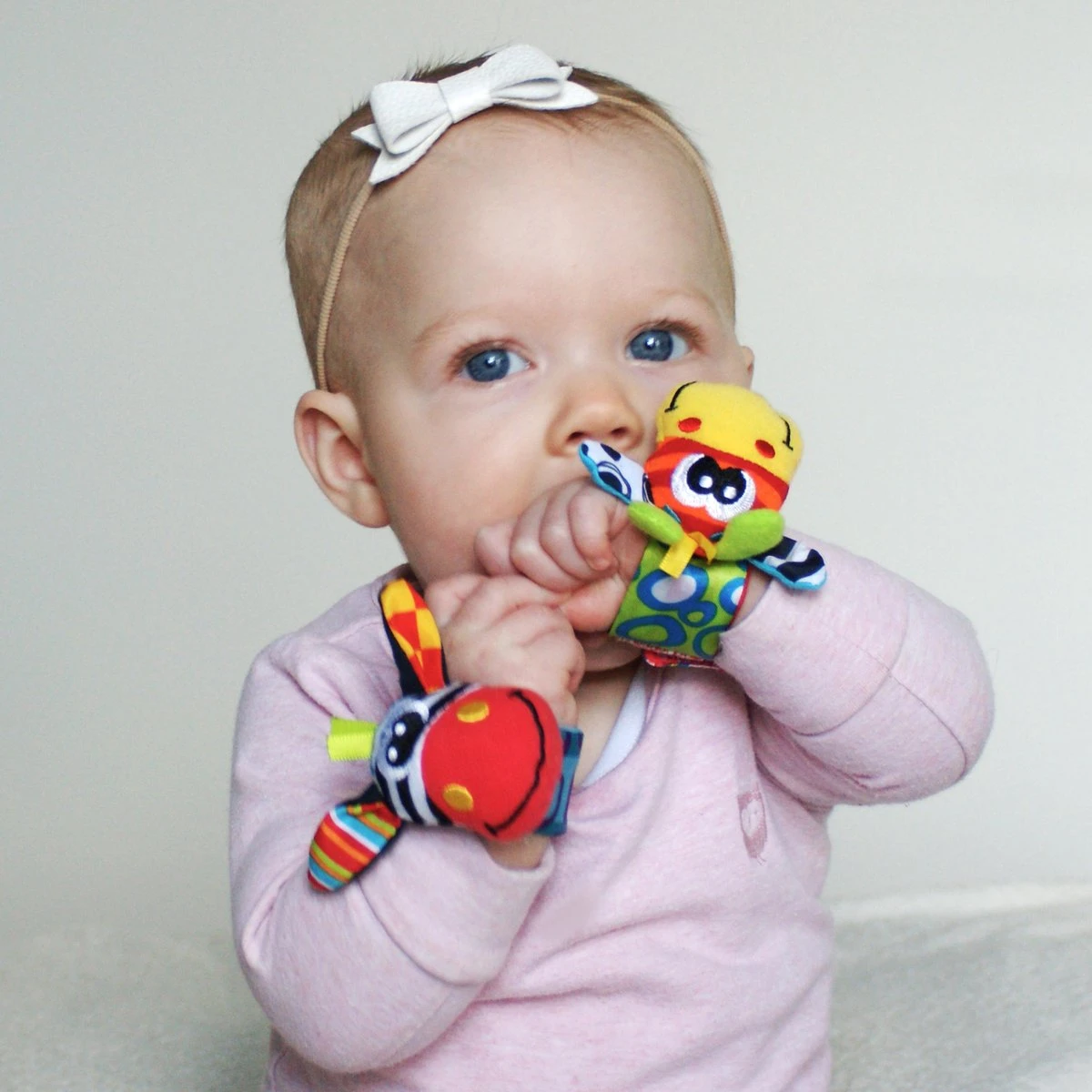 Waar zijn m’n handen en voeten? Vanaf het moment dat je kindje zijn/haar eigen handjes en voetjes ontdekt, zal hij/zij veel plezier beleven aan deze jungle rammelaars en voetsokjes. De polsrammelaars zijn eenvoudig vast te maken door middel van klittenband. De voetrammelaars werken als sokjes. De leuke zebra en giraffe karakters beschikken over een mix van pluche, geweven en zijdezachte stoffen, ideaal voor kleine handjes om te verkennen. Verkrijgbaar in 1 maatuitvoering.