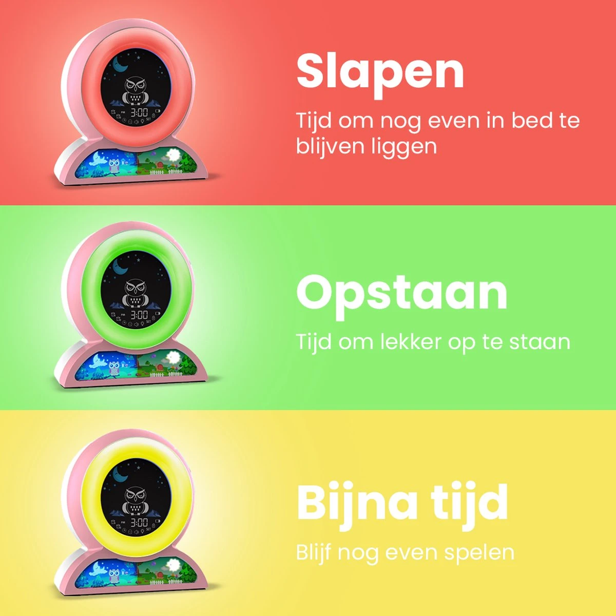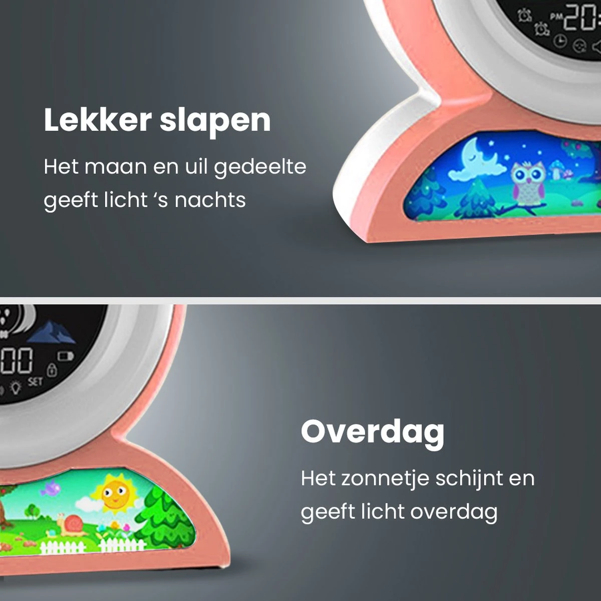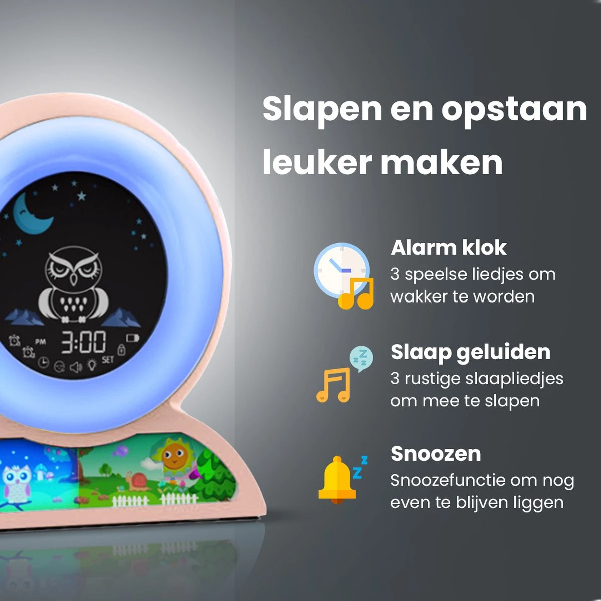 De leuk uitziende slaaptrainer is namelijk voorzien van gezichtsuitdrukkingen en kleuren die je kind leert om op tijd te gaan slapen en op te staan. De slaaptrainer vertelt dus wanneer het bedtijd is, dat het bijna tijd is om op te staan en wanneer het tijd is om op te staan! Deze fraaie slaapwekker is dus ideaal om een goed slaapritme te ontwikkelen en daarnaast kan je zelf genieten van een paar uurtjes extra slaap!
