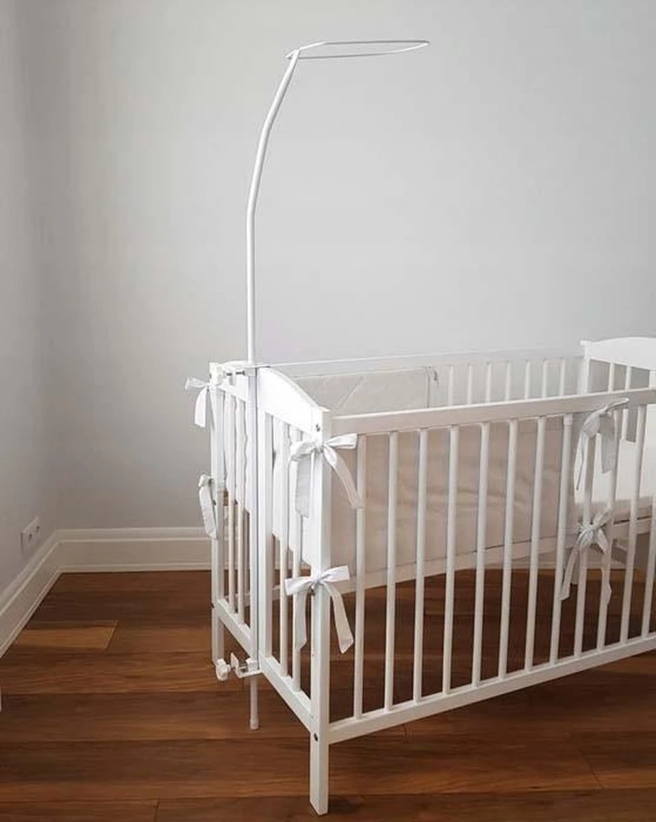 Creër met deze piekstok een warm nestje voor je baby. De sluierstang is uitermate geschikt om een sluier of hemeltje aan op te hangen. De sluierstang heeft een ovale ring aan de bovenzijde waar het hemeltje of sluiertje aan opgehangen kan worden. D.m.v. de twéé bevestigingsbeugels die erbij worden geleverd is de piekstok eenvouding aan vrijwel elk ledikant te bevestigen. En met een prachtige sluier wordt het ledikant ineens een knus nestje voor je baby. Ook geeft een sluier of hemeltje een échte babykamer uitstraling.