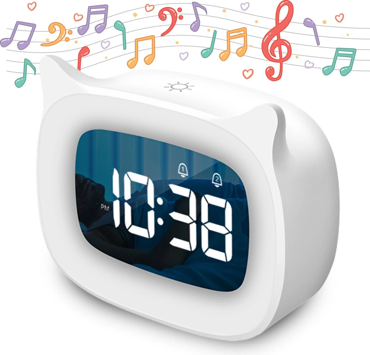 De melodieën van de kinderwekker bevat elegante muziek, natuurlijke vogelgeluiden en traditionele ringtones die speciaal voor kinderen zijn ontwikkeld. Het geluid van het alarm kan je zelf instellen, maximale geluid kan ingesteld worden tot 120 decibel, wat genoeg is om het kind wakker te maken. geschikt voor zowel volwassenen als kinderen, zodat u ’s ochtends comfortabel wakker kunt worden en een perfecte dag kunt beleven.