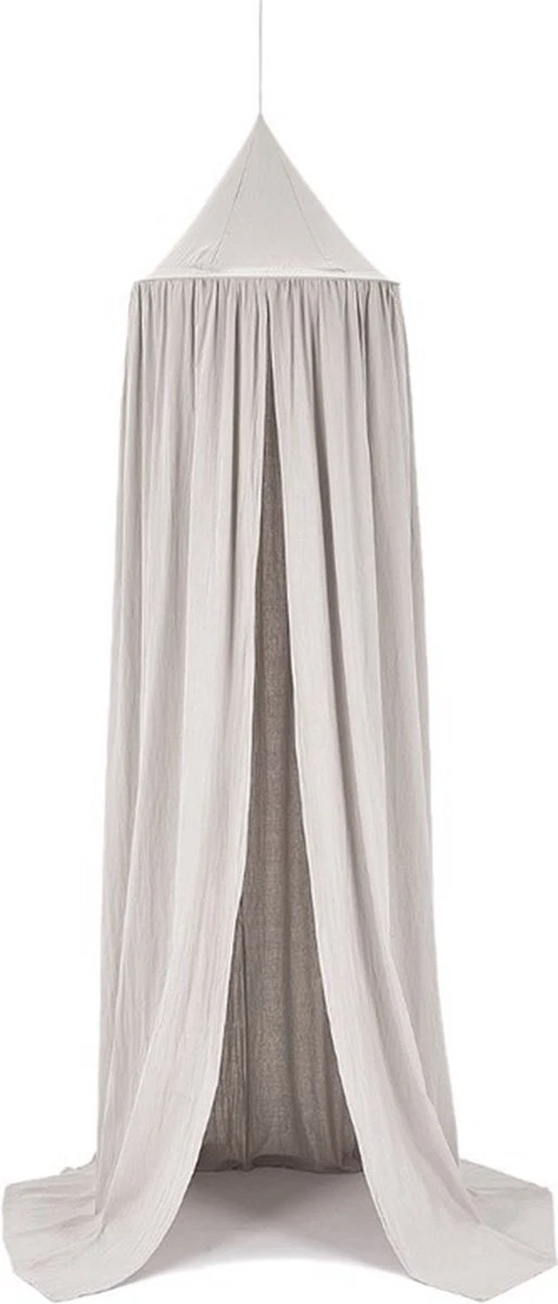 Een mooie vintage klamboe van 100% katoen om jouw wieg of ledikant mee af te maken. De klamboe kan eenvoudig worden opgehangen met een ijzeren hanger en een draad. Beide worden met de klamboe meegeleverd. De klamboe is op verschillende hoogtes te hangen.