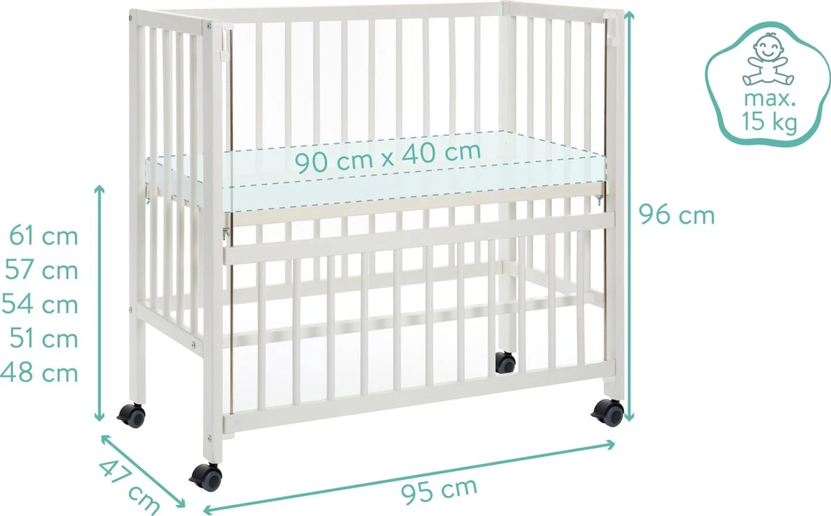 √ Dit wiegje heeft 5 verstelbare hoogtes, gemeten van vloer tot bovenkant van het matraspaneel. Hierbij de afmetingen;